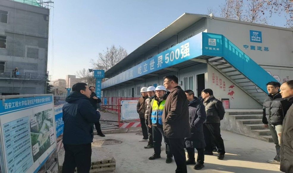 1月13日,西安工程大学校长张晓晖带队检查指导产教融合创新大楼项目建设情况,相关职能部门负责人陪同调研。基建处处长刘群力详细汇报项目整体进展、关键节点完成情况,以及寒假、春节期间施工安全保障部署与节后复工计划。